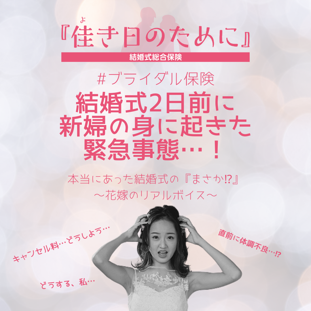 実際に結婚式総合保険に加入された花嫁の中には実際に「まさか」を体験された方もいらっしゃいます。